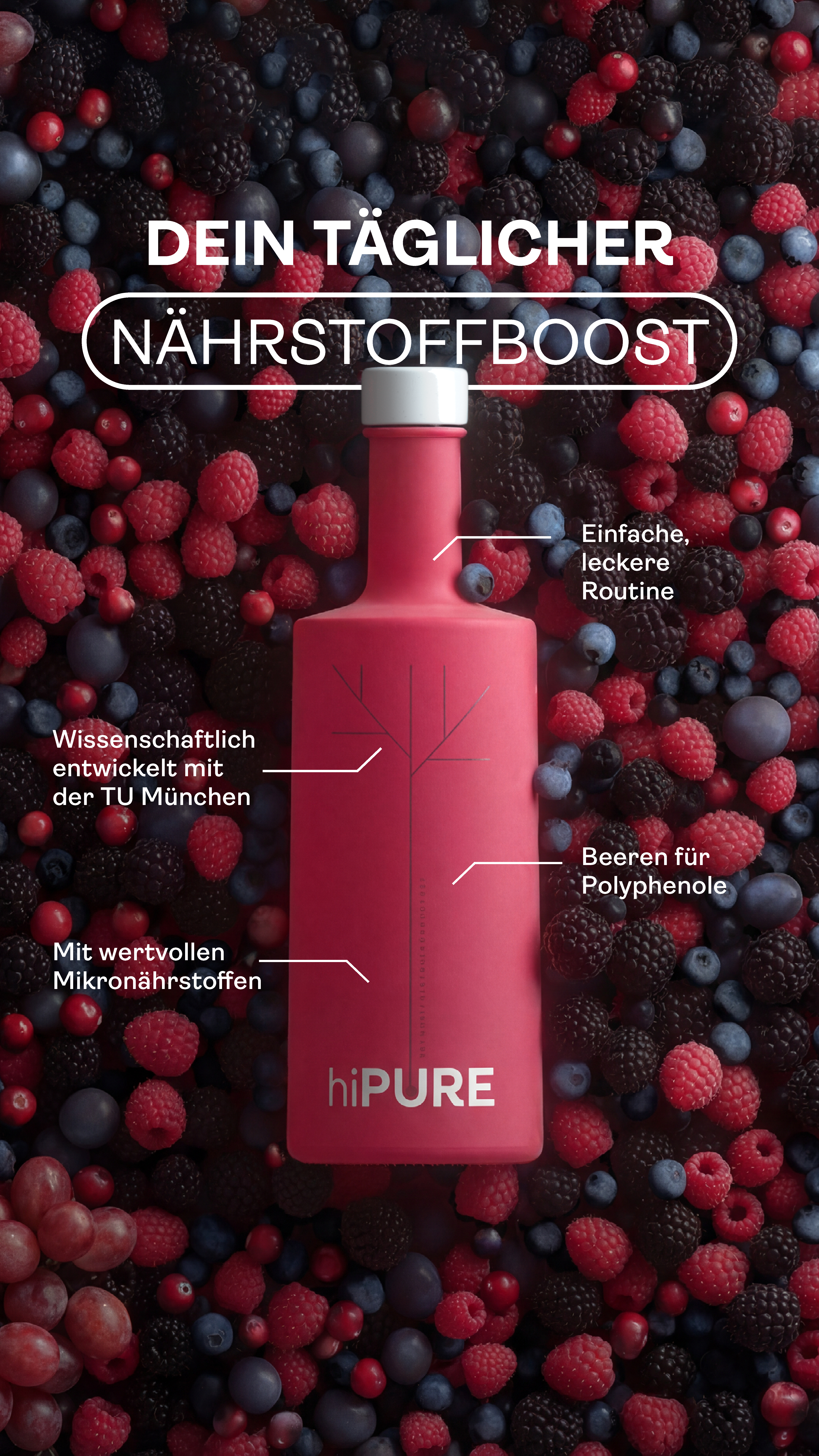 Unser Tipp: Bestell Dir gleich Deine erste Flasche hiPURE – und unterstütze den täglichen Nährstoffbedarf von Dir und Deiner Familie.